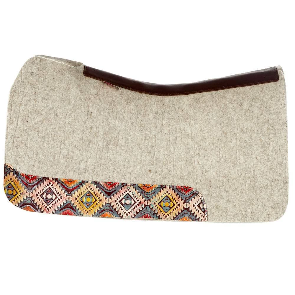 The Barrel Racer 5 Star Saddle Pad is a great pad for Barrel Racing and Smaller Saddles. It keeps your horse comfortable and your saddle in place allowing the best performance from your horse! The 100% pure virgin wool felt wicks away moisture, cleans up easily and stabilizes your saddle with limited cinching. Wear leathers provide protection and durability. Hand-made in the USA.