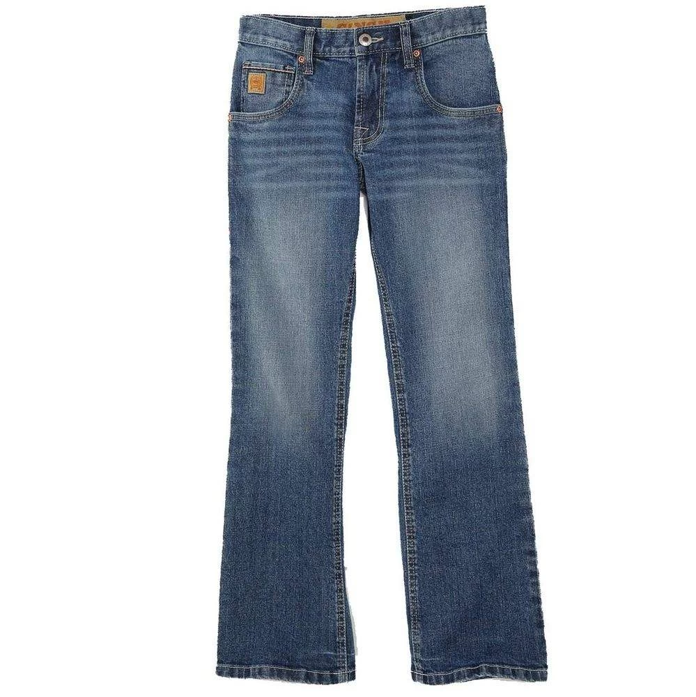 Constructed in a performance stretch denim, this relaxed fit boy’s jean features a classic rinse finish complemented by tint, hand sanding, whiskers and chevrons. Cream and amber embroidered back pockets, along with copper hardware deliver a jean with continuous style.