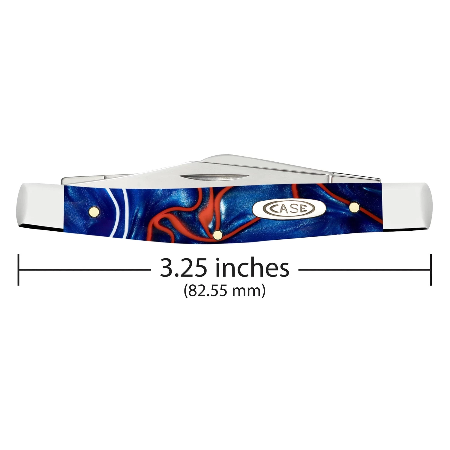 This Medium Stockman is a part of the Patriotic Kirinite® Family. No other material has the impactful style and durability of Kirinite®. Smooth but never slippery, Kirinite® bond with your hand gets better after each polishing. Show off your patriotism with this red, white and blue handle! Stockman’s pack three blades in a convenient but very practical pocket knife. The Clip and Sheepfoot blade sit on the pocket end while the Pen blade sits on the cap end. The Clip blade is commonly used as a multi-purpose blade and preferred for detail work. The Sheepfoot blade allows for added strength at the point making it great for carving and achieving a clean cut. The Pen blade is great for light work.
