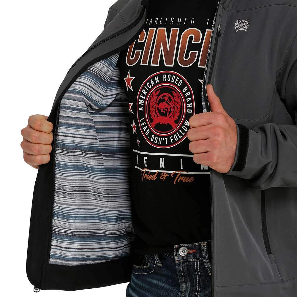 Be ready for fall’s cool down wearing a stylish charcoal jacket by CINCH. Textured bonded construction features dual inner pockets, contrast lining, metaluxe zippers, a left chest zippered pocket for necessities, dual hand pockets and logo embroidery. Designed with Durable Water Resistant (DWR) finish for inclement weather.