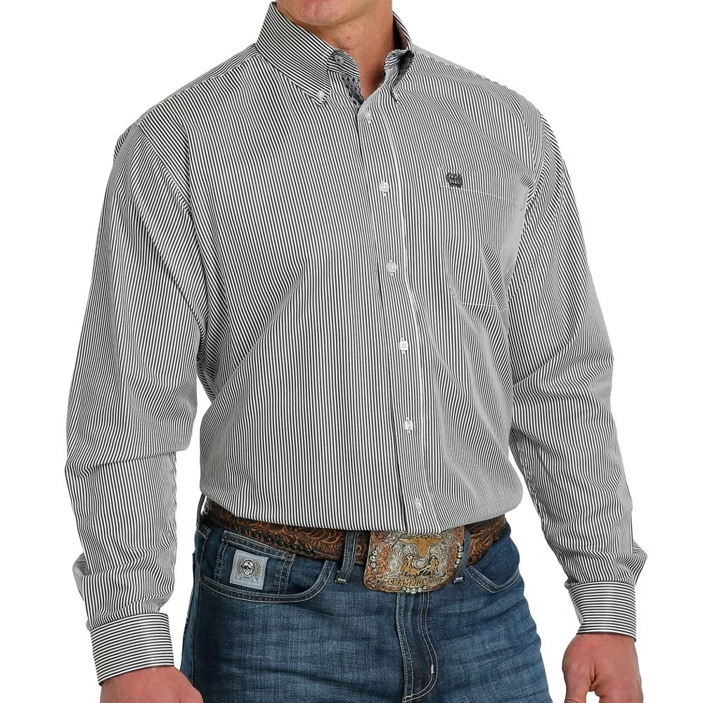 You can’t go wrong wearing a classic grey stripe cotton plain weave like this grey colored option crafted by CINCH. A reliable wardrobe staple, this shirt features an open left front pocket, embroidered logo and white buttons.