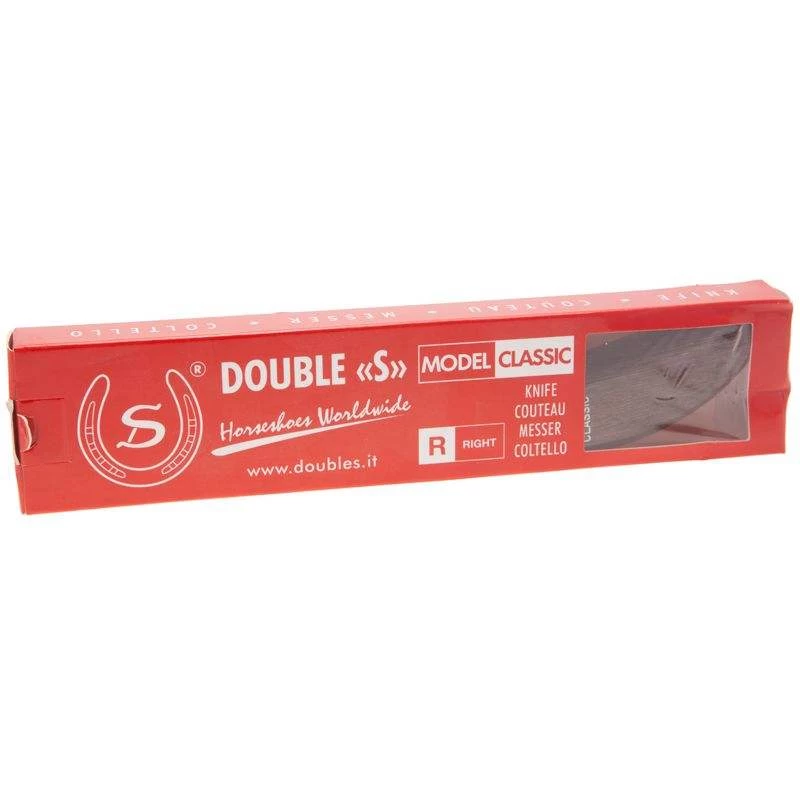 Double S Hoof Knives are made in Italy by brothers Marco and Leonardo Schelfi. Their knives are made from high grade steel and represent excellent value. The Classic (red box) Hoof Knife has a drop blade and ergonomic handle. Doulbe S Classic Hoof Knives enables trimming, cutting and scraping of hooves.