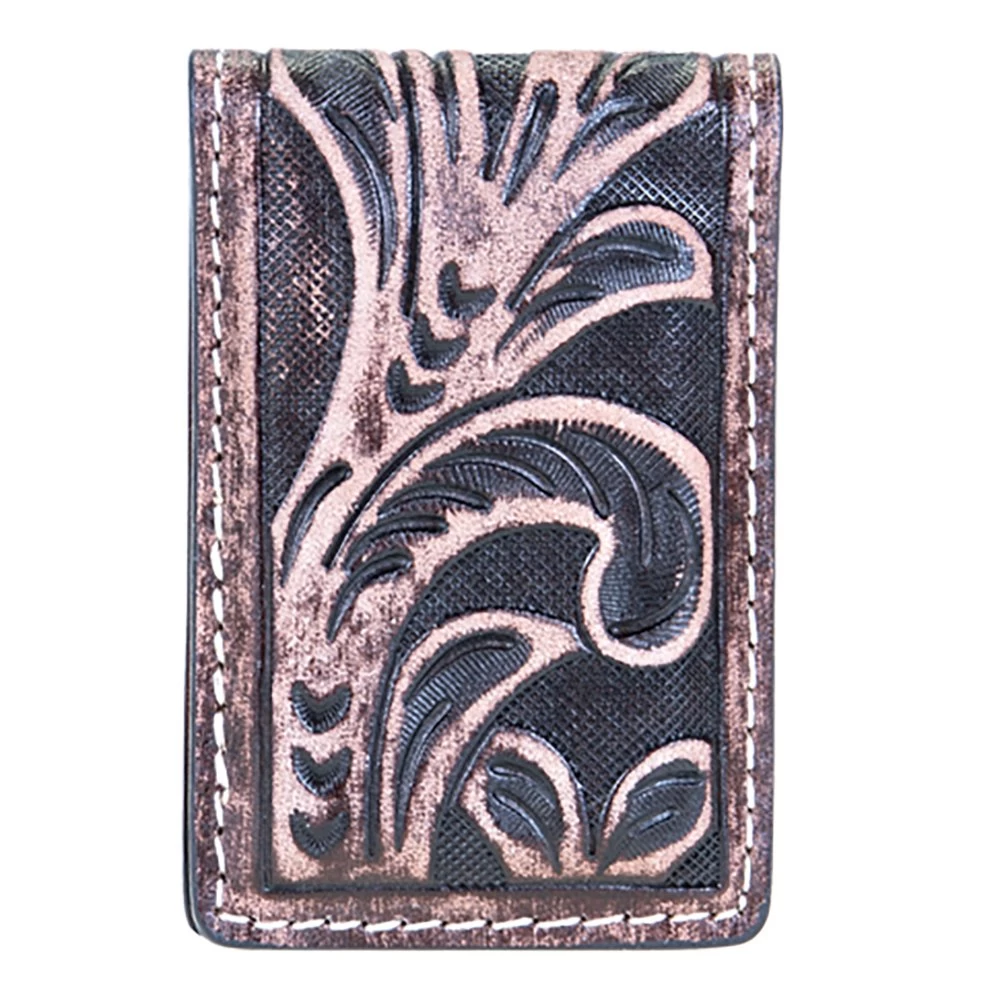 This Men’s Leather Tooled Magnetic Money Clip as a front pocket wallet.
