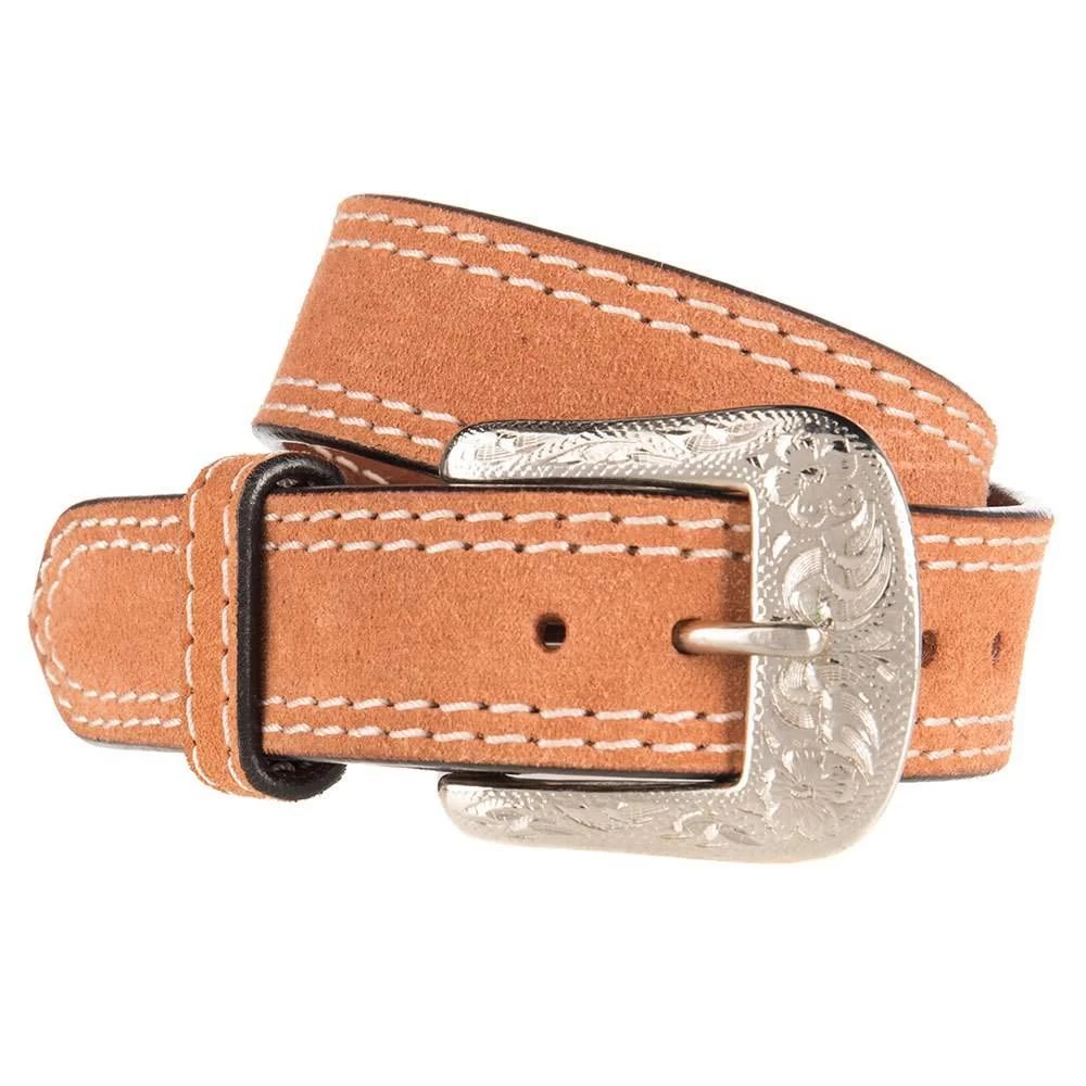 Watch your little one show off their style in our new Rough-out belt with double white stitching and a silver buckle.