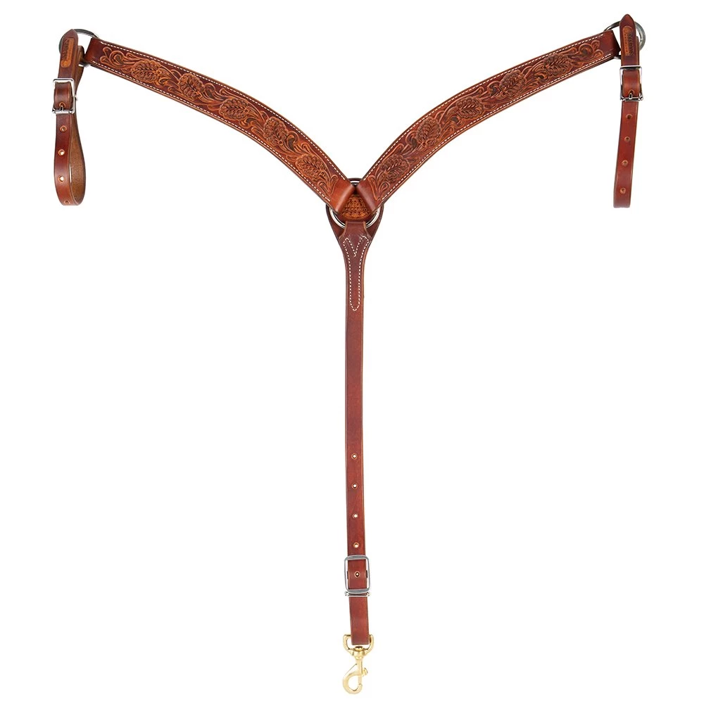 This Martin Saddlery breastcollar is made out of Natural Leather and features a weathered Antique Finish and Mountain Daisy Tooling. It is 1 3/4″ Wide and was designed to match saddle NRS-97MTD although is does match other saddles as well.