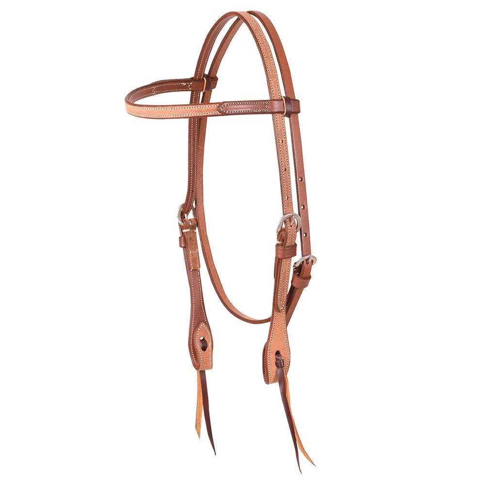 This Martin Saddlery Browband headstall is handcrafted out of natural roughout skirting leather with stainless steel buckles and neck tie knot ends.