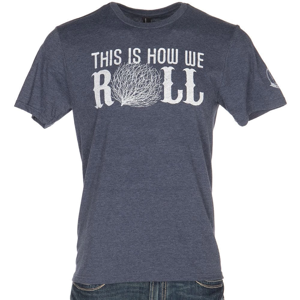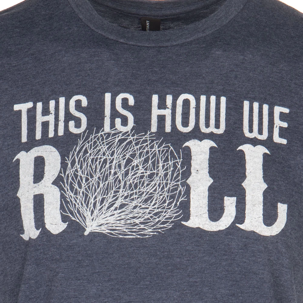 The “This is how we roll” graphic t-shirt from Mason Jar Label is a navy cotton tee with a vintage feel and features a tumbleweed graphic on the front.