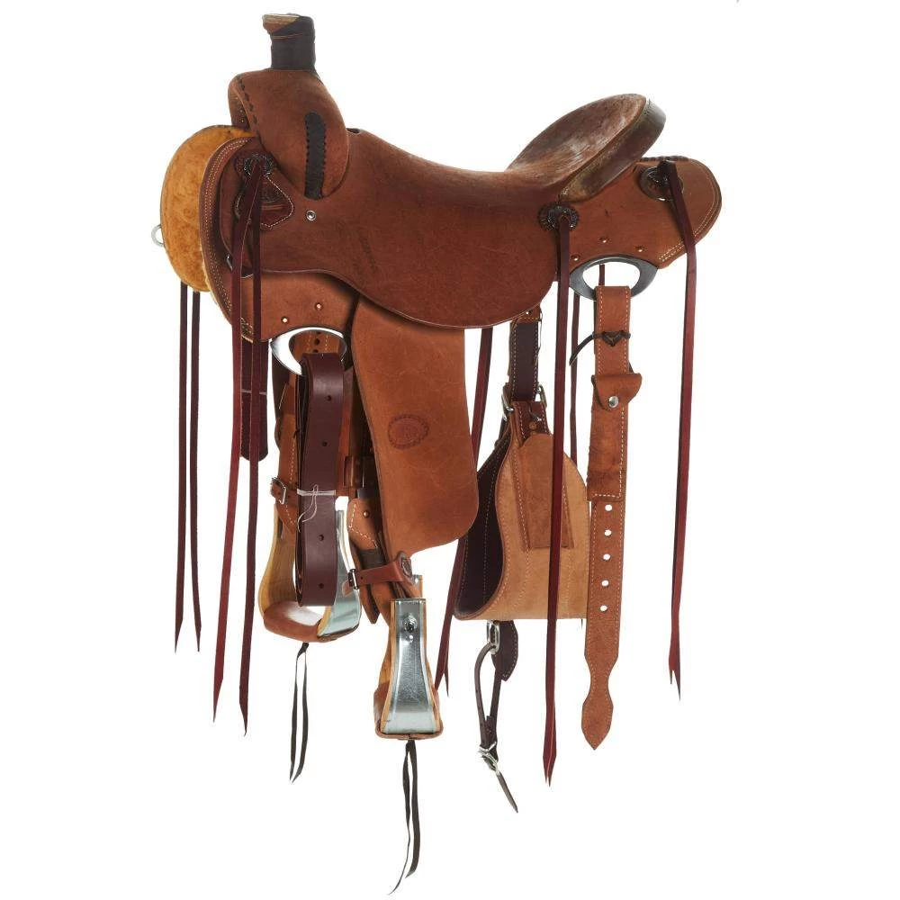This NRS Competitor Series Ranch Roper has a 5 year warranty on the rawhide covered wood tree, plain silver slotted conchos, all roughout natural heavy oil leather with latigo buckstitch accents, a hard seat with rawhide Cheyenne Roll, and 90/10 wool blend lining. This saddle is built with a deep pocket for a comfortable ride all day.