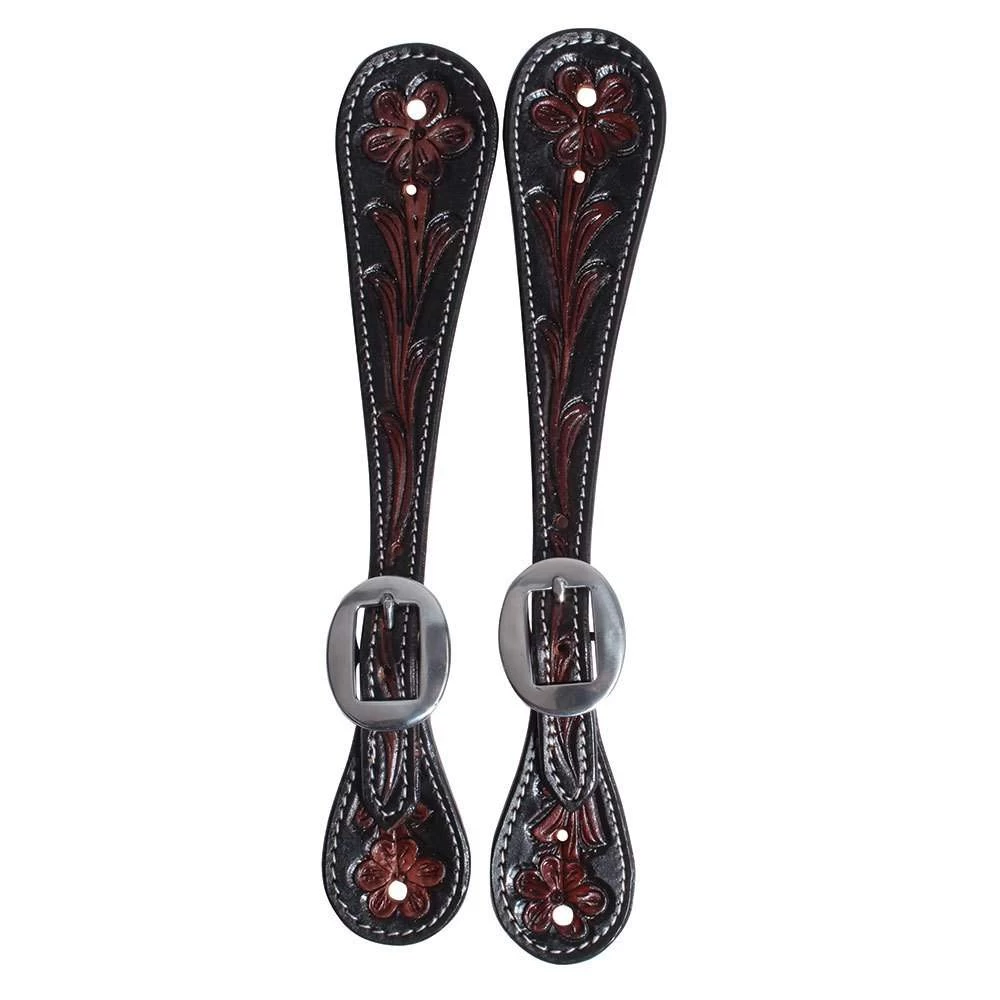 Professional’s Choice adult black and chocolate floral spur straps.