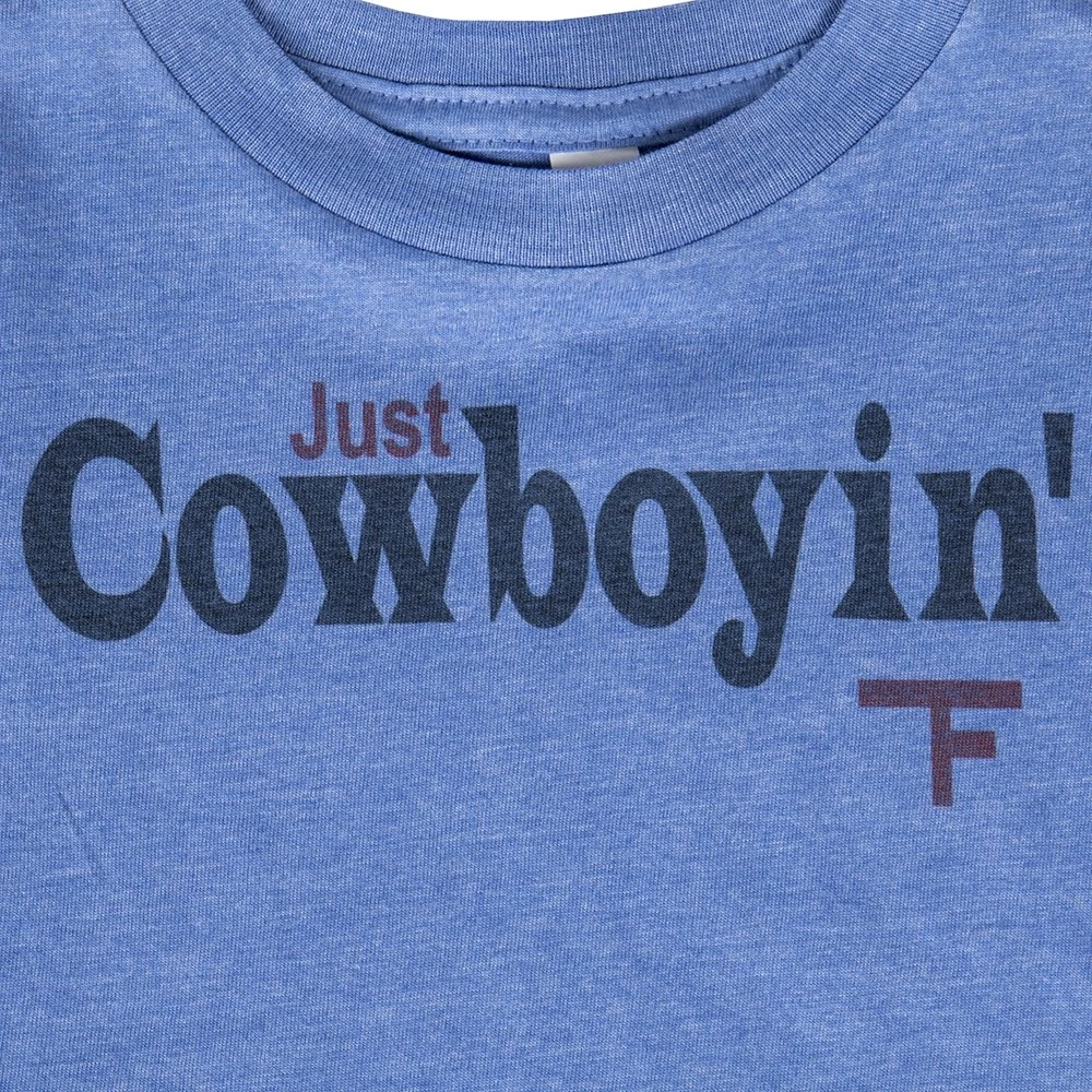 Go for a casual everyday look with our blue just cowboyin short sleeve tee from Twisted Filly!