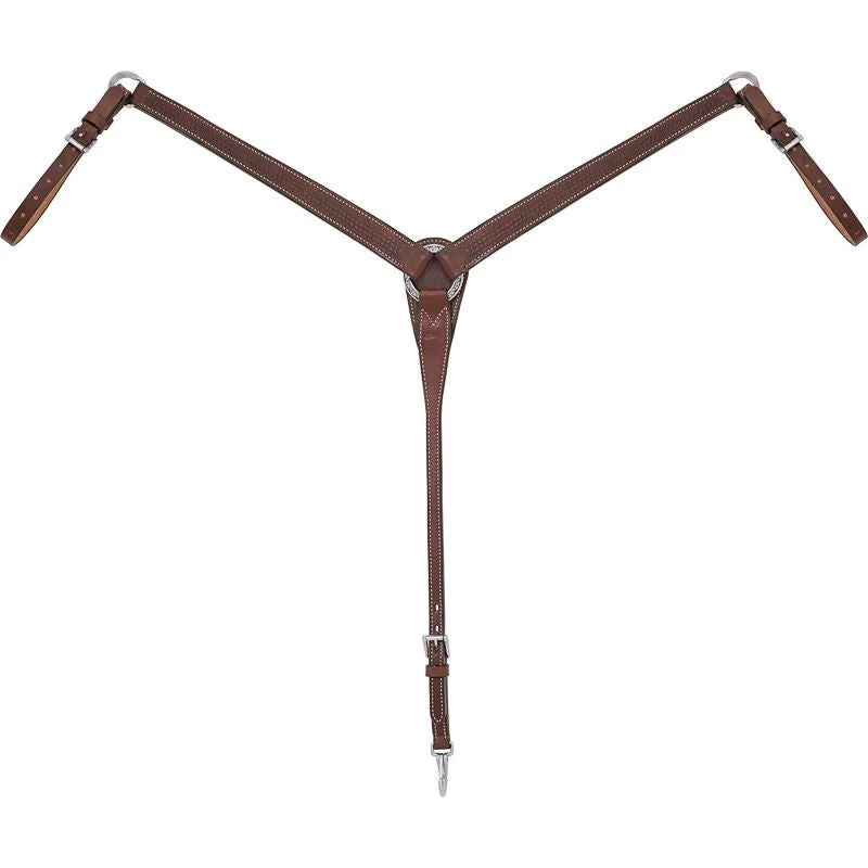 Classic Breast Collar that is tapered for a nice fit as well as basket stamped tooling on premium bridle leather.