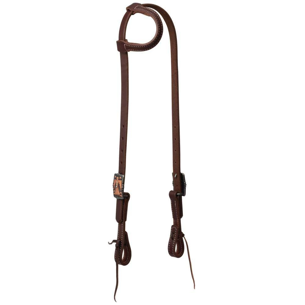 The ultimate performance is achieved through dipping the harness leather of Oiled Canyon Rose in oil, dressing it with saddle butter, and then hand-rubbing it. Additionally, Weaver Leather offers exclusive engraved heel buckles and loops with black accents. The Water Tie Bit Ends are also included.