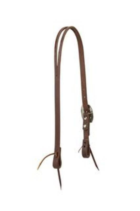 Fashion-forward hardware lends western style to this on-trend headstall. Premium harness leather is dipped in oil, dressed with saddle butter and hand rubbed for the ultimate in performance and a rich golden chestnut color. Rugged design stands up to heavy-duty use and looks good doing it.