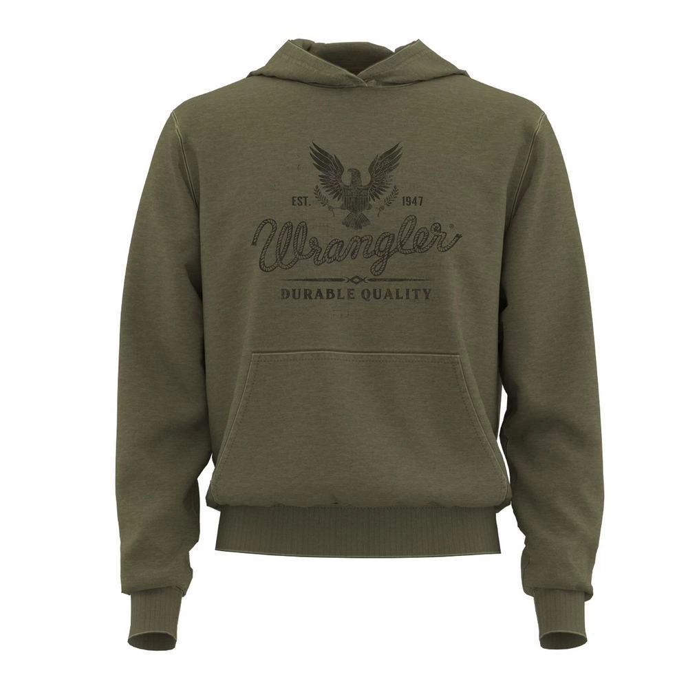 Wrangler® logo pullover hoodie makes it easy to keep warm and snug as cooler weather arrives. It’s crafted from a cotton blend for nonstop comfort in the seasons ahead.